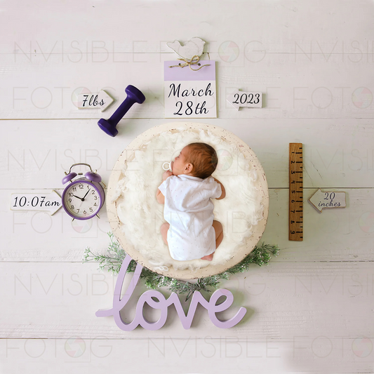 Digital Birth Stats Newborn Photo